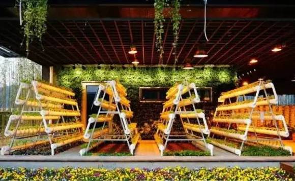 墙面种满绿精灵、帆根、鸭脚木和阿波蕨。